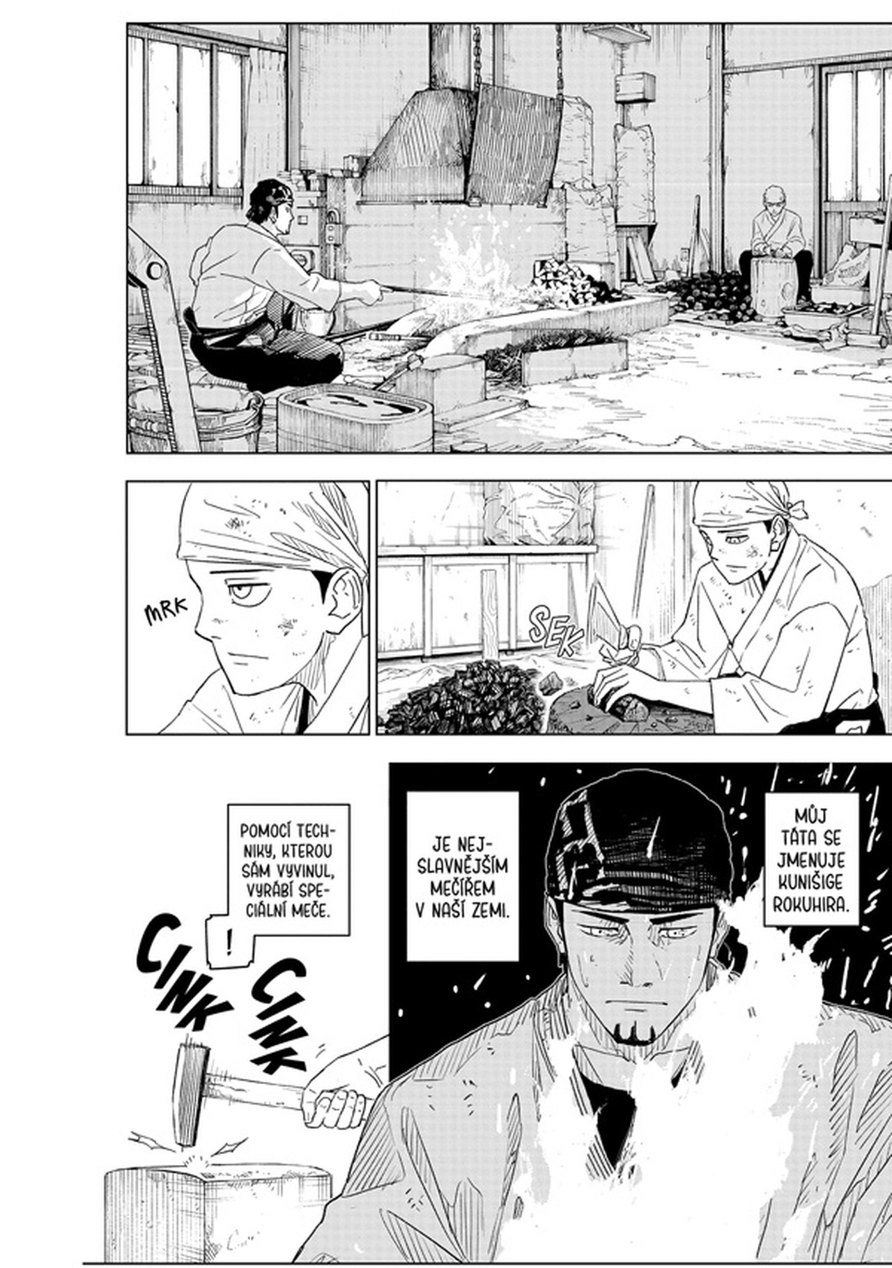 Mladík Čihiro, syn legendárního mečíře, se vytrvale učí rodinnému řemeslu pod vedením svého otce, aby mohl jít v jeho šlépějích. Rozverný otec se zamlklým synem sice tvoří nesourodou dvojici, ale jejich domácnost nikdy neopouští smích a dobrá nálada.