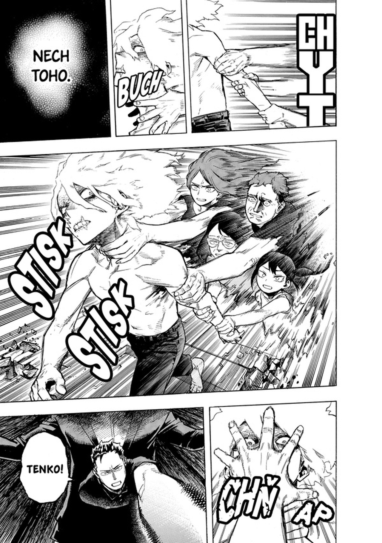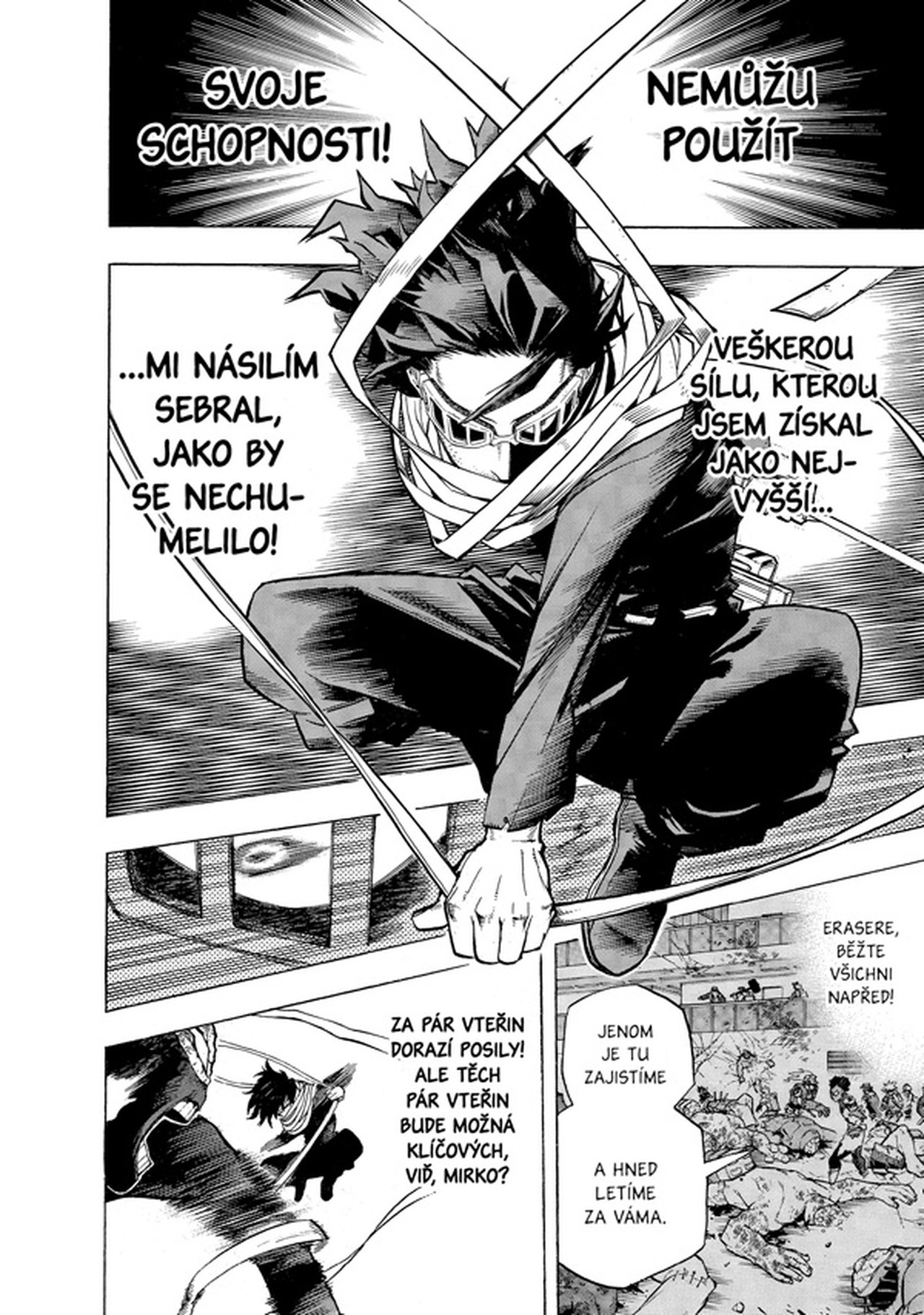 Souběžný útok superhrdinů na obě základny padouchů je v plném proudu, ale ne vše se vyvíjí podle plánu. Horskou vilu se sice podařilo obklíčit, ale Hawks jen o vlásek unikl smrti rukou Dabiho. Mirko mezitím v nemocnici svádí nerovný boj s přesilou Nejvyšších Nómu, kteří jí brání dostat se ke spícímu Šigarakimu. V sázce je mnohé – jeho probuzení by svět uvrhlo do noční můry, jakou už kdysi jednou zažil!