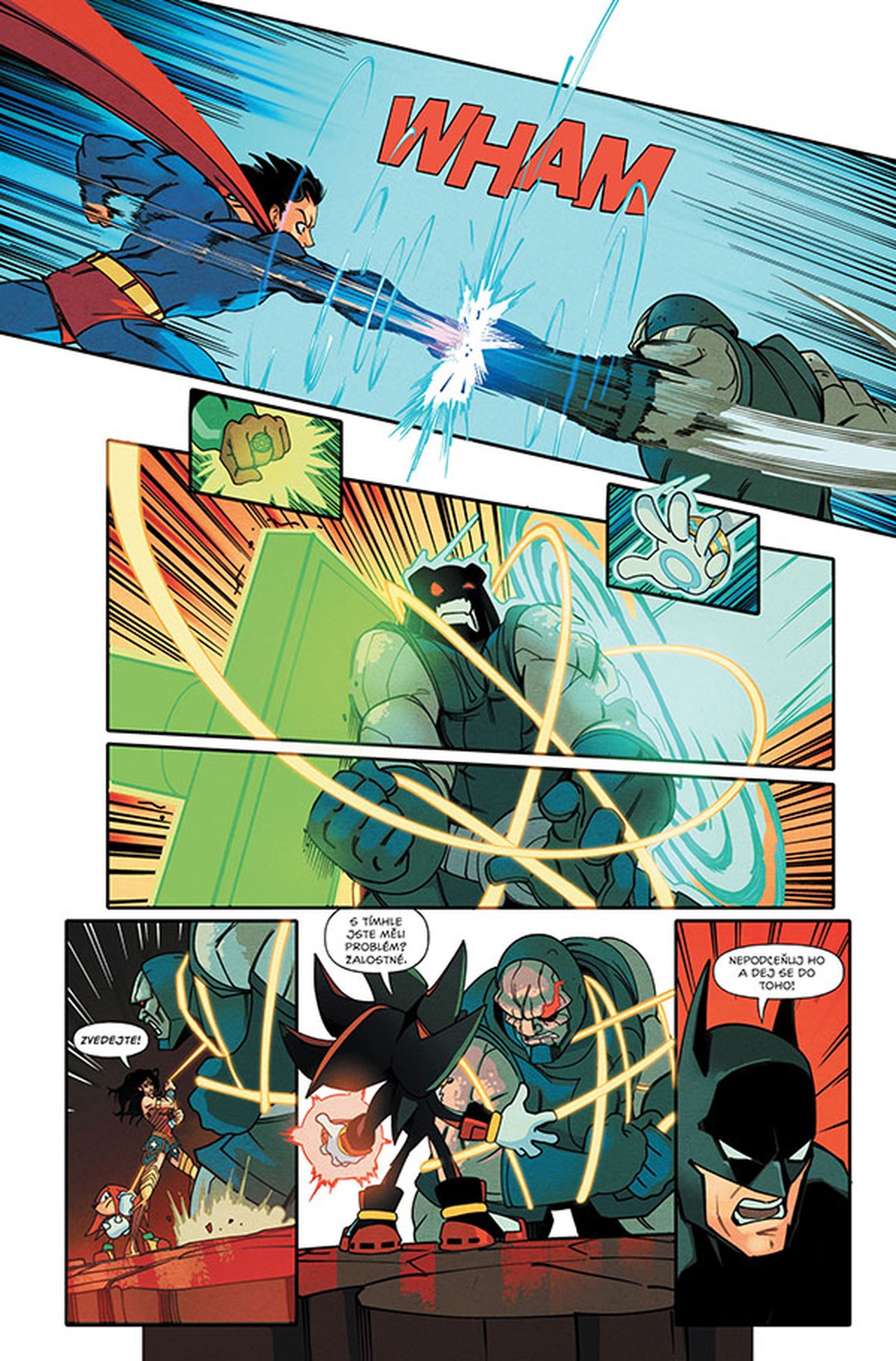 Monstrózní Darkseid překročil hranice mezi dimenzemi, aby napadl Sonicův svět a získal neomezenou moc. Modrý ježek a jeho přátelé už čelili všemu možnému, šílenými vědci počínaje a pradávnými duchy konče, nicméně armáda Apokolipsu by přece jenom mohla být nad jejich síly. Naštěstí je tu hrdinská Liga spravedlnosti, která jim přijde na pomoc! Nepropásněte toto zcela unikátní a neobvyklé propojení dvou slavných týmů!