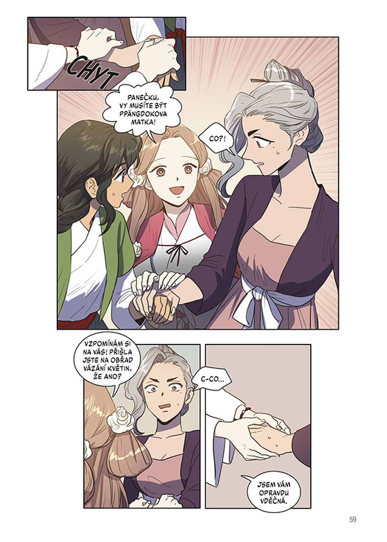 Krásná žena ministra Čanga a Sim Čchong, dcera slepého žebráka, jsou si každým dnem bližší. Čchong si postupně osvojuje pravidla slušného chování urozených dam a učí se, jak si získat lidskou přízeň. Nezapomněla ale, kým skutečně je? Budou nově naučené způsoby fungovat i ve světě tam venku, za zdmi ministrova domu?