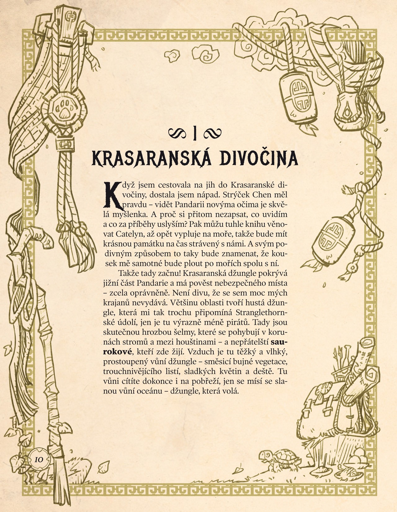 Starobylý domov pandarenů, klidný a překypující zelení, oplývá krásou, magií a příběhy, které nesmějí zůstat neodvyprávěny. Vydejte se spolu s Li Li Stormstout, přezdívanou Divoká psice, jejím strýčkem Chenem Stormstoutem a jejich dlouholetou přítelkyní Vostrou Catelyn na putování zemí, během něhož zažívají dobrodružství, odhalují tajemství a zjišťují, jaké to je opustit domov - a zase se do něj vrátit. Od bujného Nefritového lesa až po teplo Bludného ostrova - objevte nové příběhy i dechberoucí kresby, které vám představí Pandarii, její obyvatele, mocné artefakty a zbroje, které zde můžete nalézt. Putování Azerothem: Pandarie je vaším dalším krokem na úchvatné cestě napříč Azerothem.