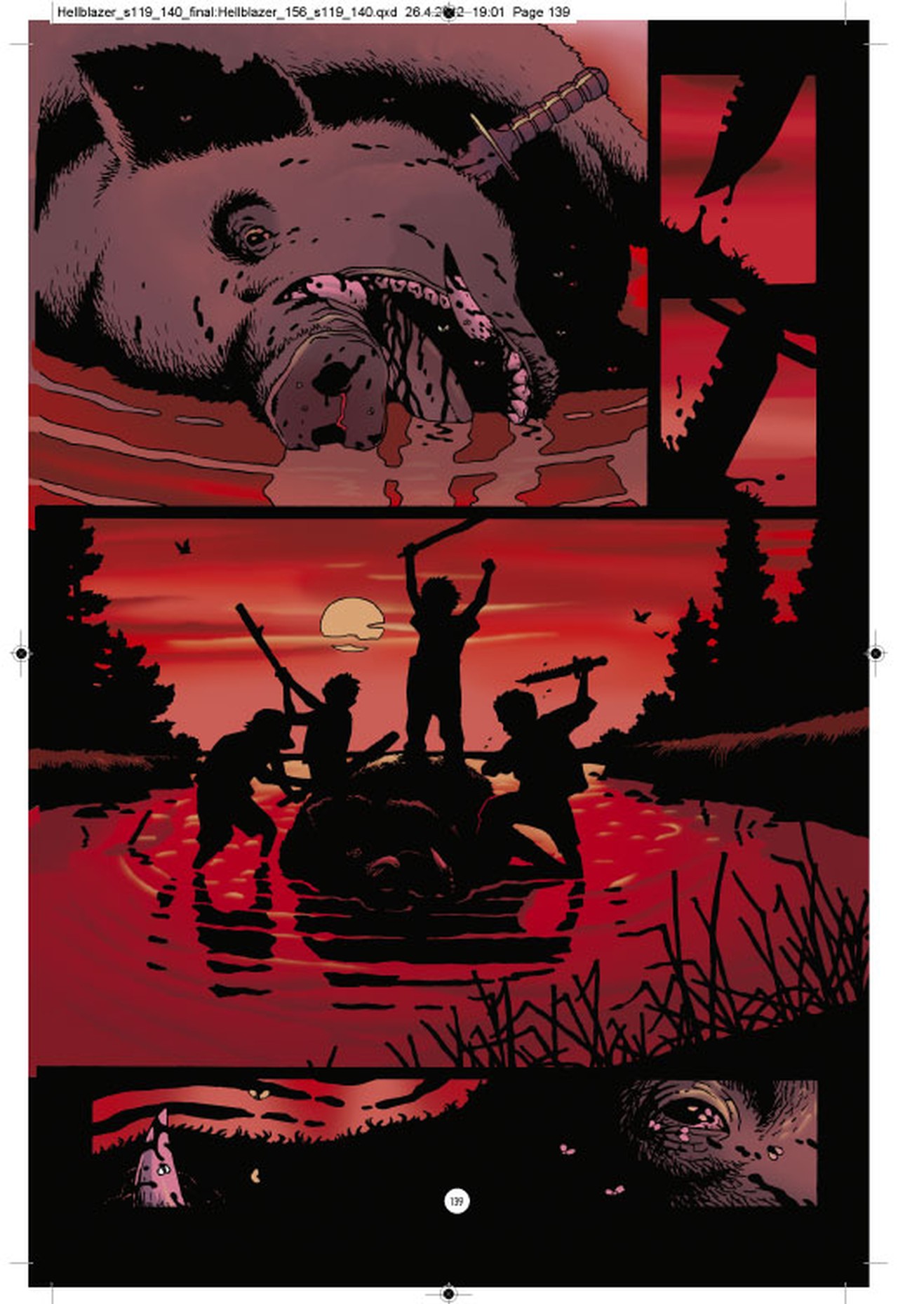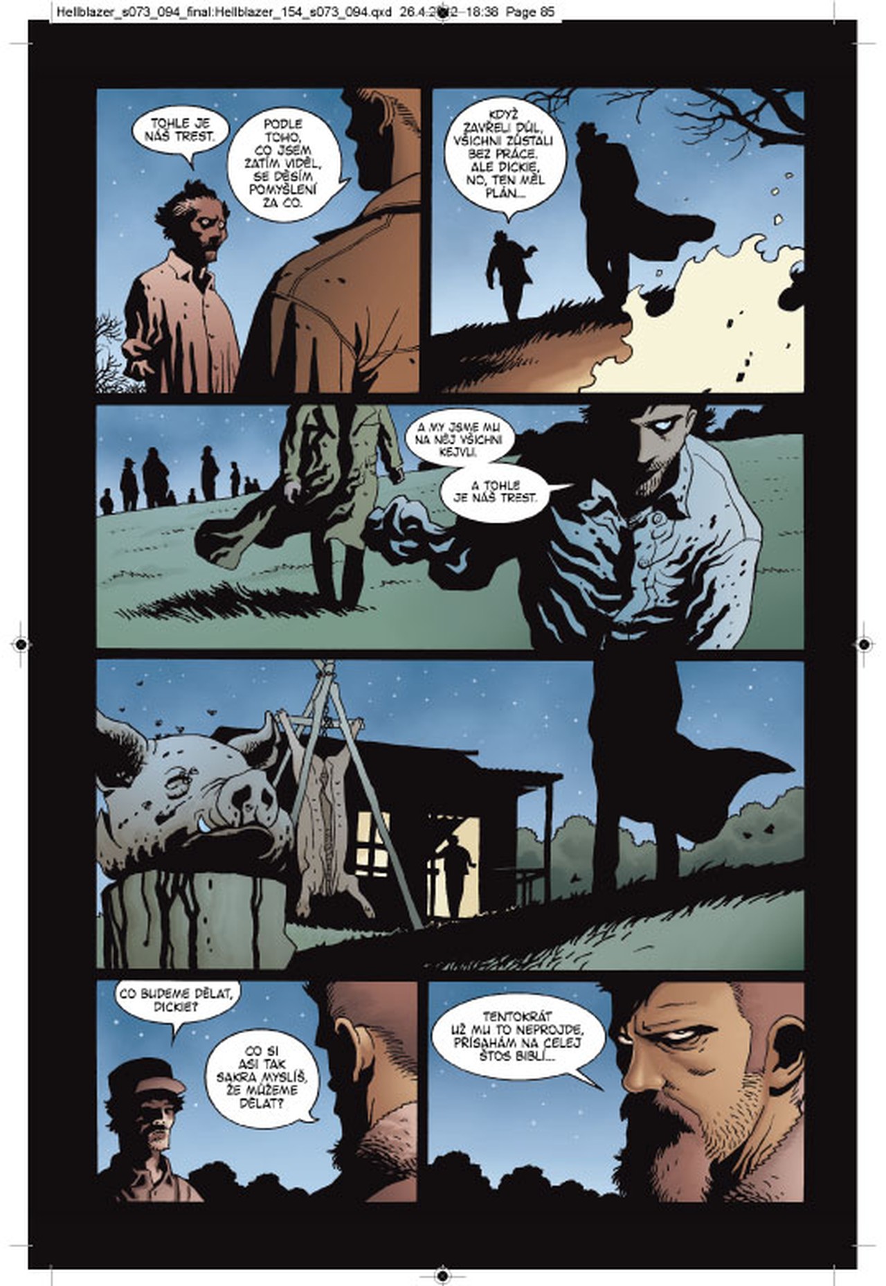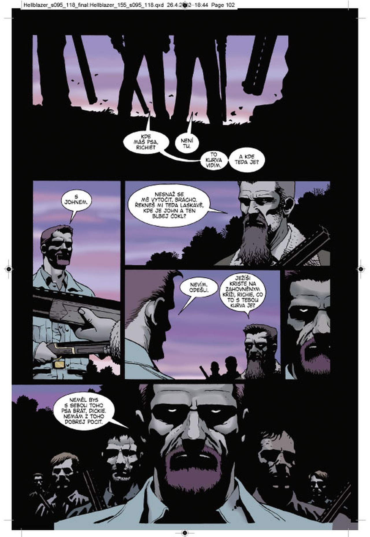 John Constantine si nejdřív odkroutil flastr v base a pak na své cestě americkými hvozdy vymetl pár temnějších zákoutí. A teď to vypadá, že se konečně dopracovává k původní prapříčině svého putování – k důvodu, proč Richard „Klikař“ Fermin spáchal sebevraždu. Ale aby se mohl setkat s Ferminovou vdovou, bude muset vstoupit do chřtánu dalšího monstra – do malebného venkovského hnízda amerických rasistů.