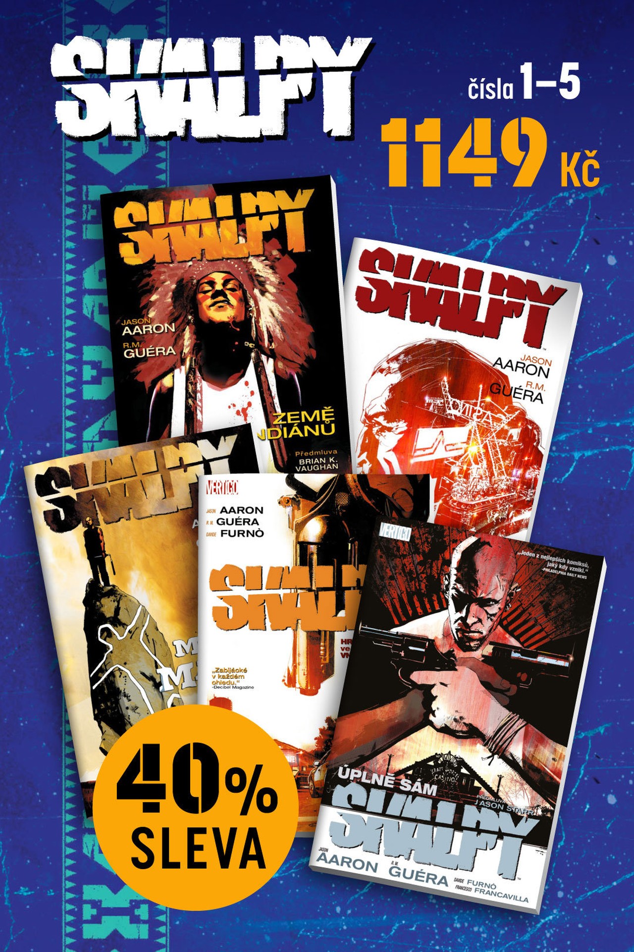Tento balíček obsahuje prvních pět dílů oceňované komiksové série Skalpy od scenáristy Jasona Aarona a to se slevou 40 %!